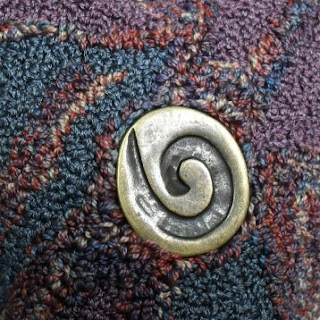 I've completed another heart - this time calling it "Light and Shadows". The fibers that I recently acquired made this story easy to tell. I couldn't resist combining the Wildflower shade of 'winter wheat' with warm gold and soft lavender. As I punched this heart it seemed to speak to me of canyon walls with their warmth and the depths of the shadows within. The button in the center (which unfortunately reflects light so that you aren't getting a true picture of its color and richness) looks like a glazed tile piece - also in a rich, warm gold color.